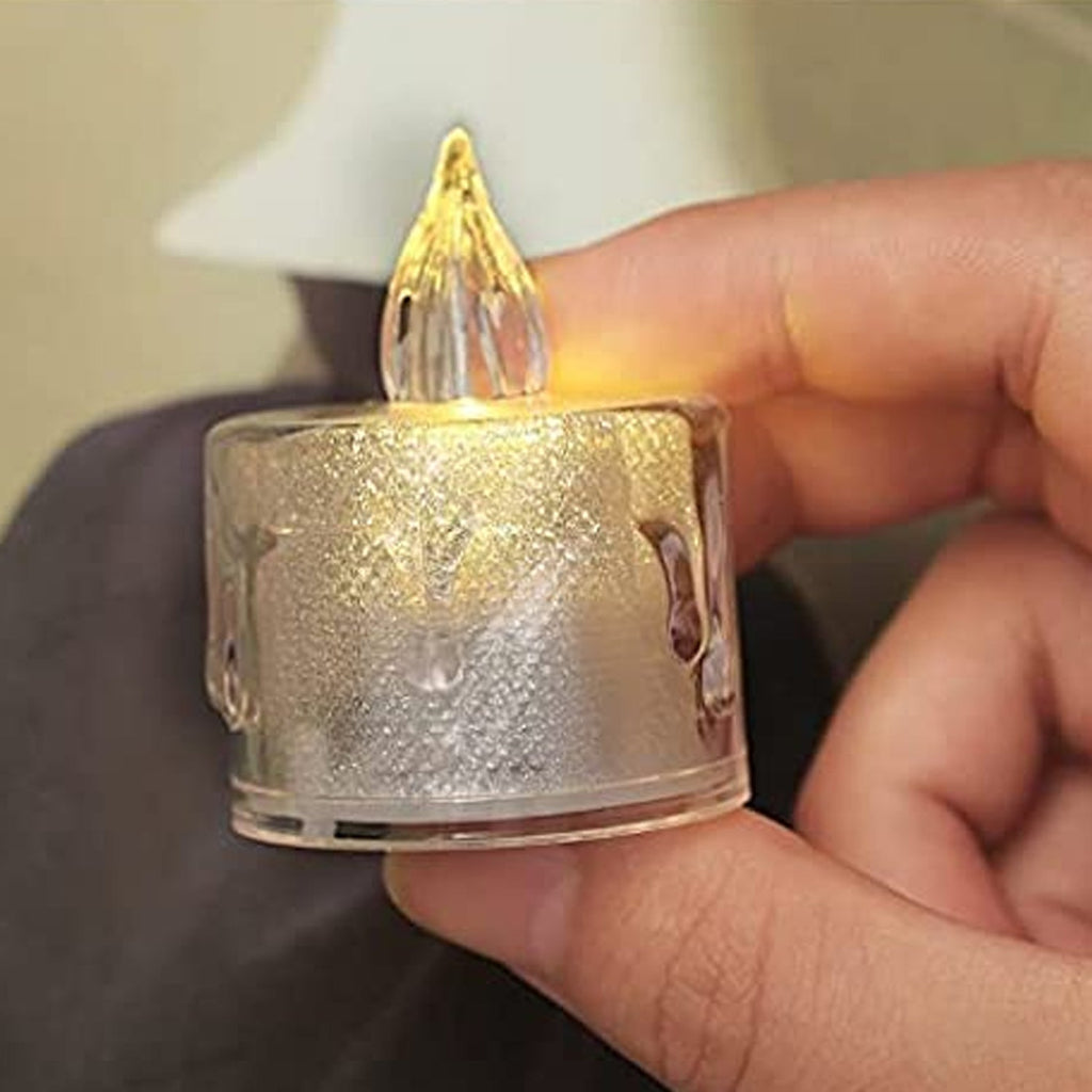 12 Pcs Flameless and Smokeless Decorative Acrylic Candles Transparent Led Tea Light Candle for Gifting, House, Diwali, Christmas, Festival, Events Decor Candles, Diwali Item